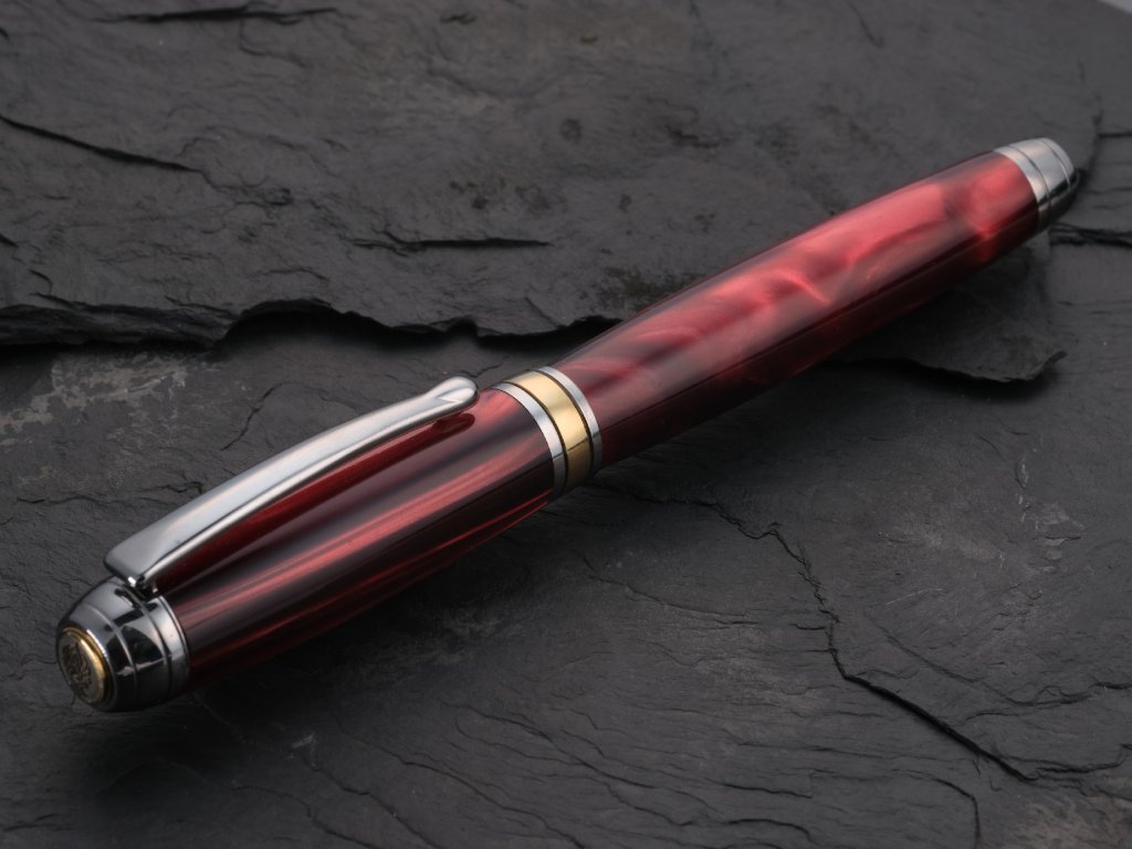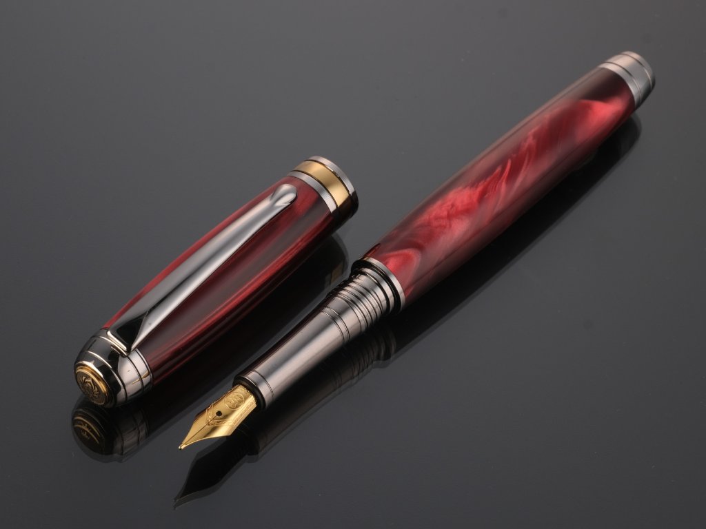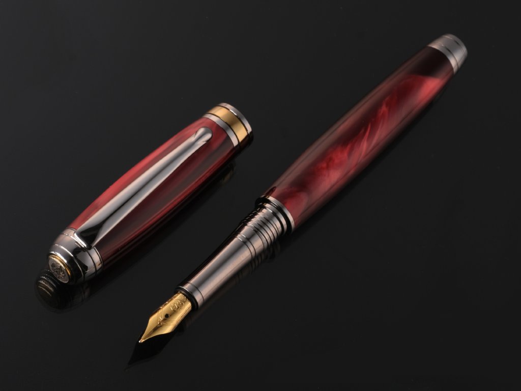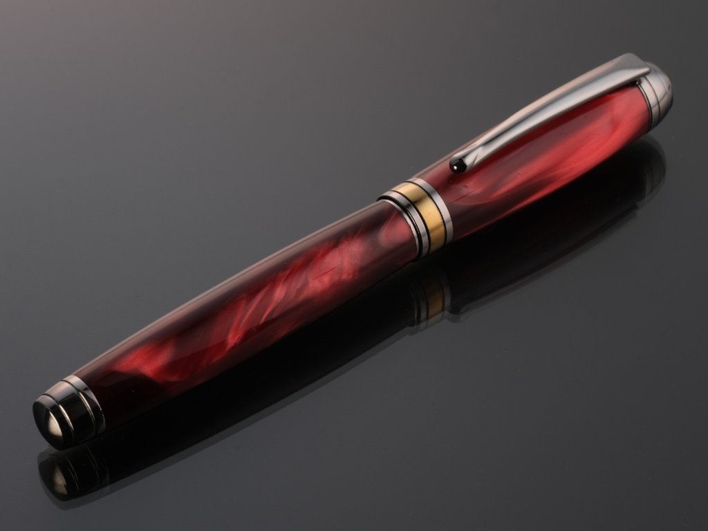 Výrazný design z červeného perleťového akrylu – každé pero je originál